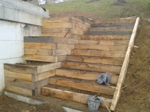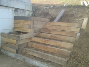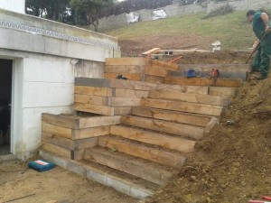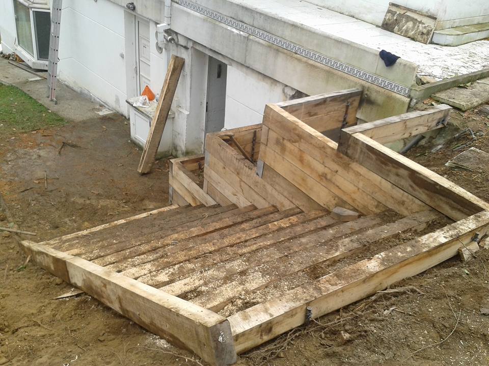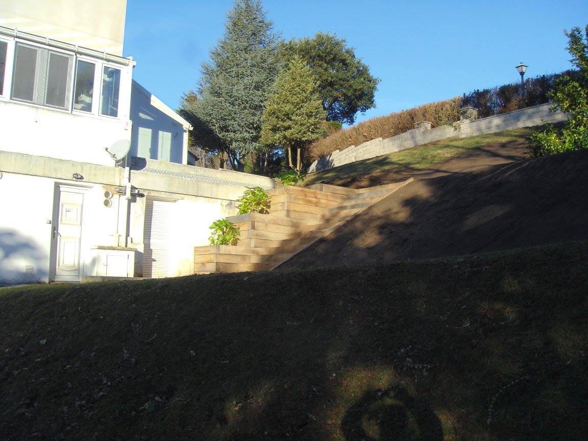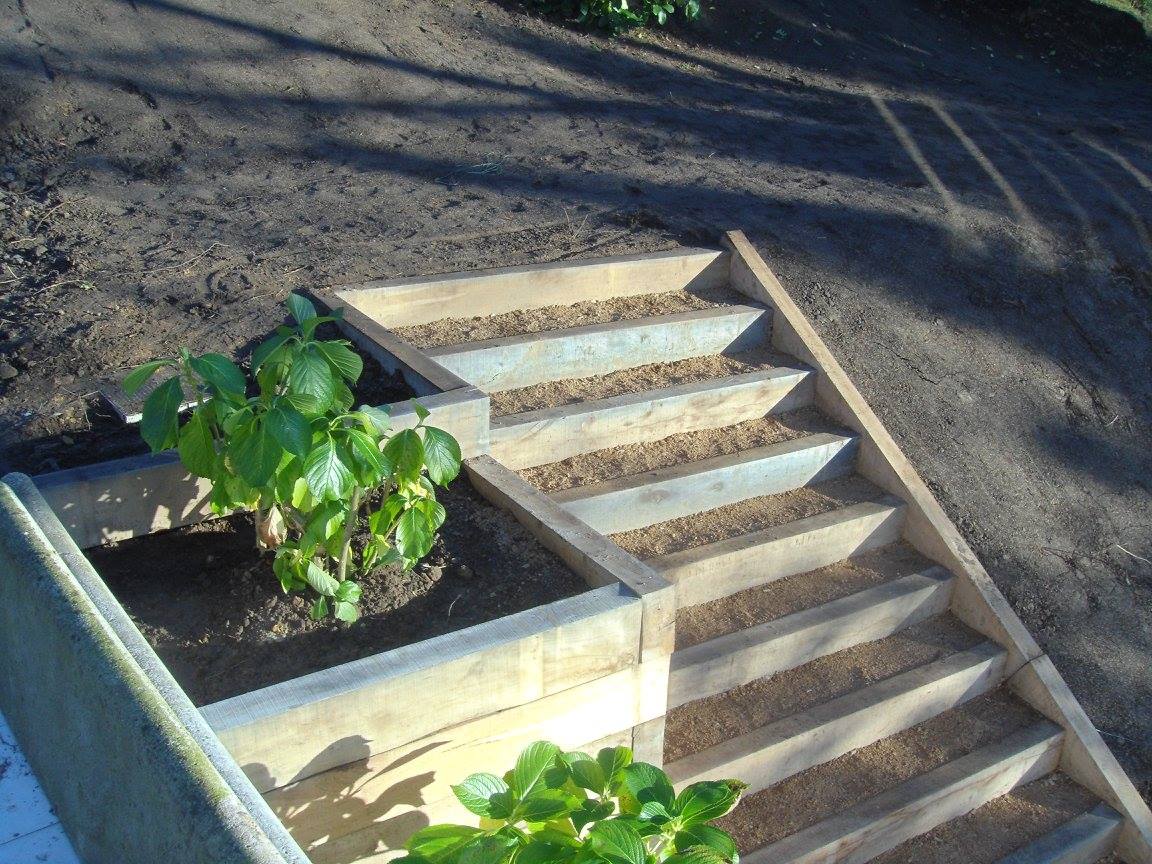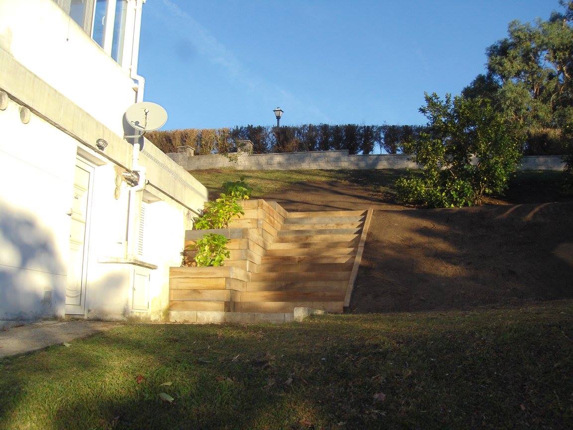 Construcción escalera con macetero